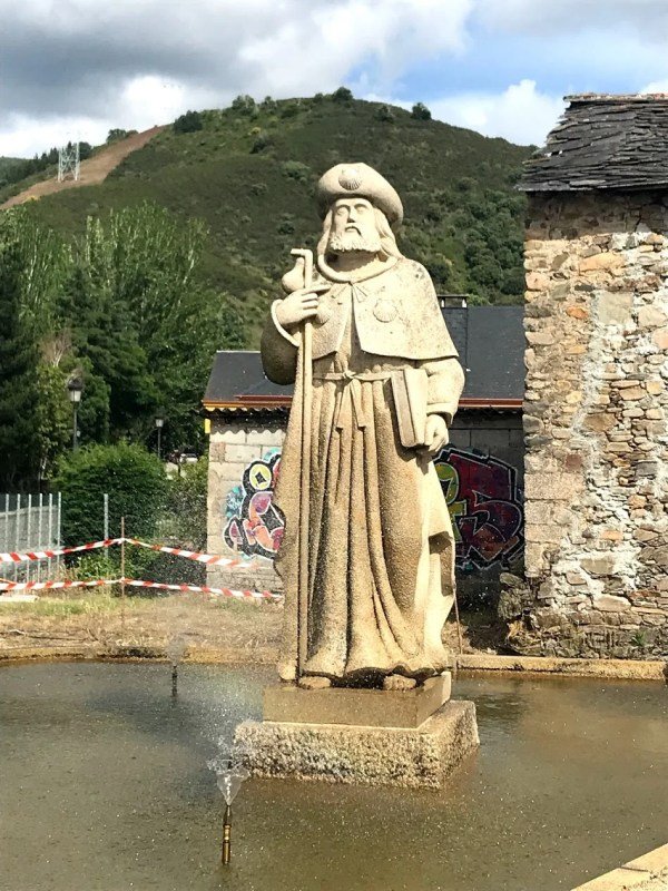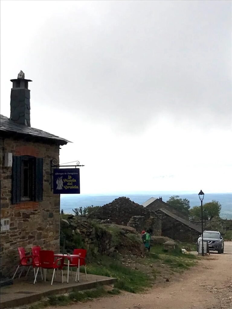 As we arrived at Acebo, the first café on the right was the place to stop. It was full of pilgrims and it seemed like all of our pilgrim friends were there. The two Georges, Kelly, the original four, the baby family, and quite a few more! We all enjoyed our meals and enjoyed each other. Slowly one by one, everyone started walking again at their pace. Most of us were walking to Molinaseca.
