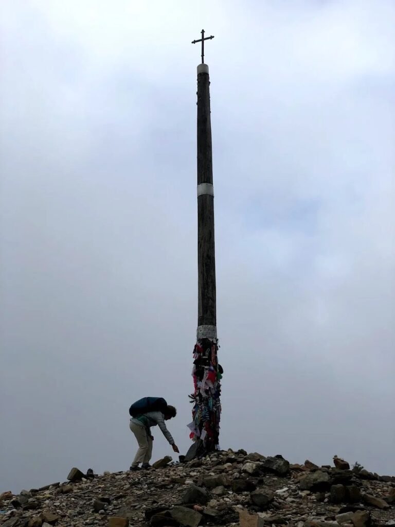We all took a moment and had our time at the cross. Busloads of pilgrims were arriving and we were trying to have some quiet time at the top.