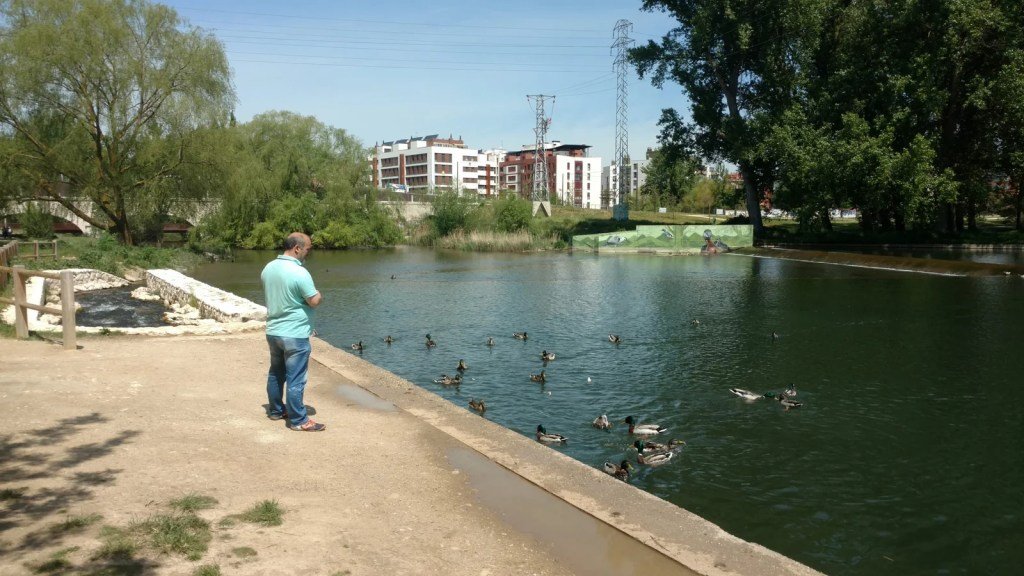 The crowds picked up as we got closer to Burgos. Moms walking with their strollers, children playing, and business men and women eating their lunch. Or maybe, just a guy looking at the ducks.