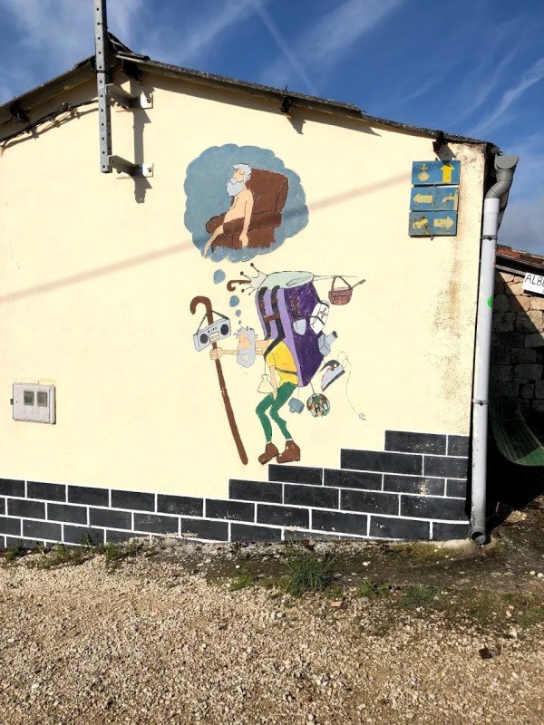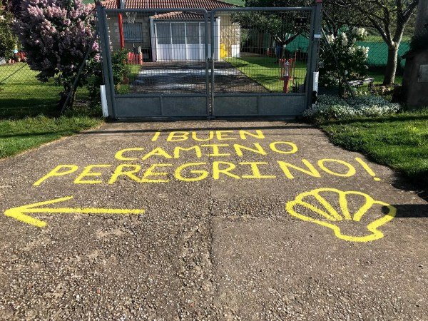 It always helps to see something that can get your mind off of your body. This is exactly what happened. All of a sudden, we saw Sue! Sue, we all yelled. He was resting with his group, so we talked for little bit and then kept going. We would see him in town, we were all heading to the Municipal Albergue.