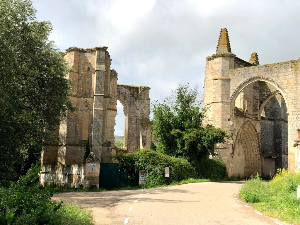 A little further down the road, we arrived at the impressive ancient 14th-century Convento de San Antón. These ruins were amazing. We passed under St. Anthony’s archway, Arco de San Antón. During the time it was active, the pilgrims were received in the church, they were blessed and given a scapular with the “tau”, they were offered wheat bread also with the “tau”, wine, and some bells also with the cross of Saint Anthony.