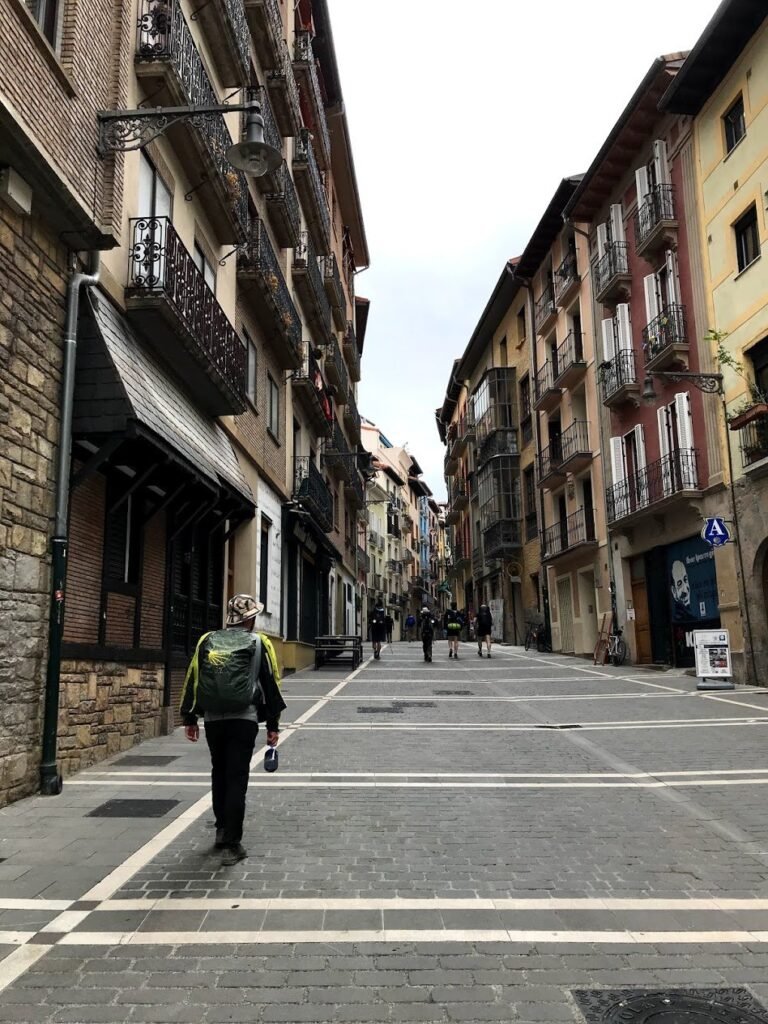 We continued for a while through natural areas before arriving in a suburb of Pamplona. It was city streets from then on and my feet were killing me. The burning sensation had begun. I just needed to get vertical. The sun was beating on us during this part of the day and it actually was getting hot. Now I was wondering, if I would rather have the rain and cold? I wasn’t sure. All I wanted was to make it through the city streets and rest my feet.