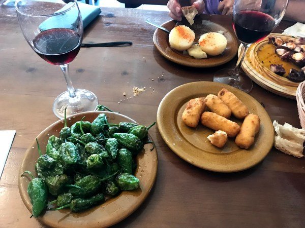 Once we stepped outside of the chapel, we followed the road into Melide, which is a larger town. But not as large as the big cities like Astorga or Pamplona. Melide is where two Camino routes come together. The Camino Frances (the busiest) and Camino Primitivo (the oldest). Naturally, the place is packed with pilgrims and locals. The Camino leads us straight into the Center and or restaurant for lunch.