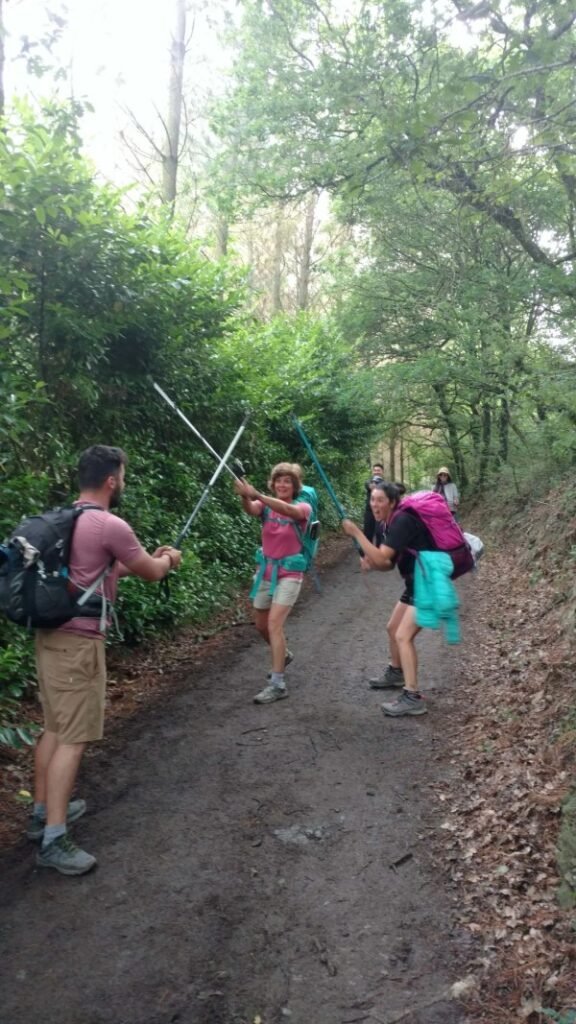 As we walked, we entertained ourselves as we have done for the last 30 days, but one of today’s entertainment was a sword fight! You just never know what’s going to happen as you walk the Camino.