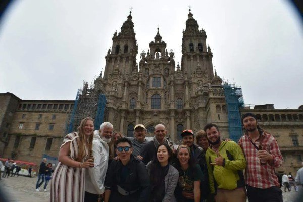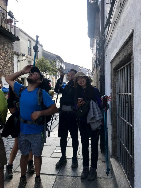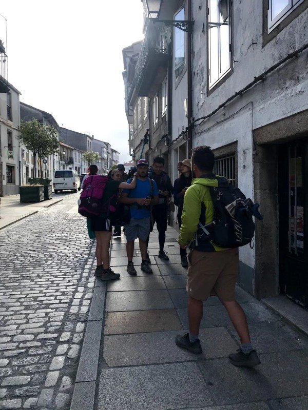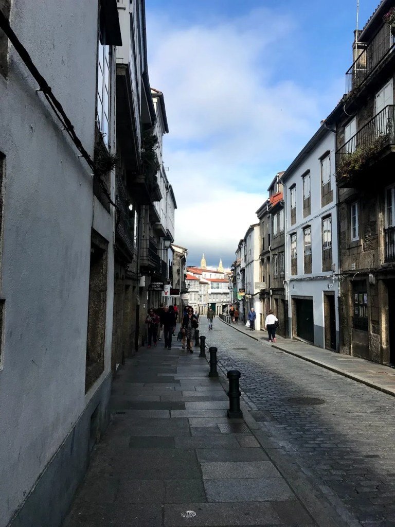 The rest of the walk was through the city streets. Just a lot of exciting chatter amongst us all. We all were anxiously waiting to arrive at the Cathedral and the Praza do Obradoiro! Even with the excitement, the city streets were getting old and our feet were tired. We all were thinking the same thing! Let’s just get to the Plaza!! Let’s just get to the Cathedral!