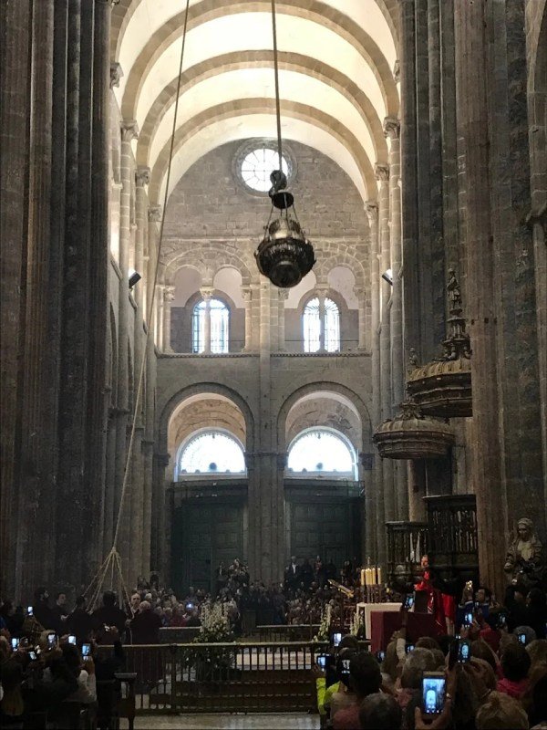 I have never cried so much, the presence of Our Lord and the celebration was overwhelming! Then we were blessed to see the Botafumeiro (Galician for ‘”smoke expeller”‘) swing! The tradition, the celebration what a way to end our pilgrimage!!