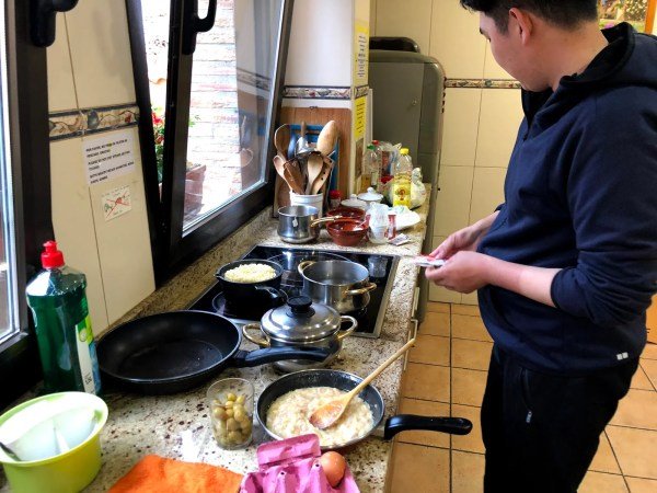 After we showered and washed our clothes, the sun came out and we were able to hang them on the line.  All perfect timing.  We made our way into town for another little snack and the grocery store. Cale and I were going to cook but Minh decided he wanted to cook.   Of course, I didn’t mind that at all.