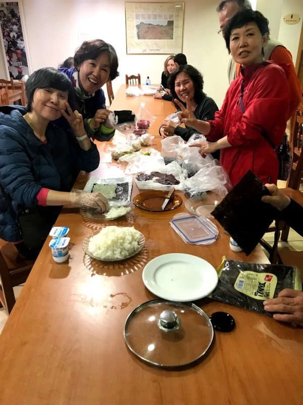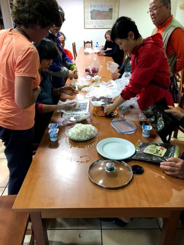 We really enjoyed this hostel. Of course, we saw all of our Camino friends and the hostel had a huge dining room so everyone just hung out and talked. We played card games, of course, and really enjoyed ourselves. There was a group from Japan and they were making Sashimi. I learned this quickly as I approached them and said “oh, you are making sushi!” They all looked up and so “No! Sashimi!”
