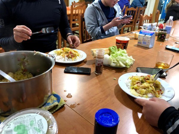 It was now time to eat! Our Creole Cabbage dish was ready. When you are cooking in a hostel, you have to share the kitchen with everyone. So you are working around everyone else. But everyone is so good about sharing things and not using things too long.