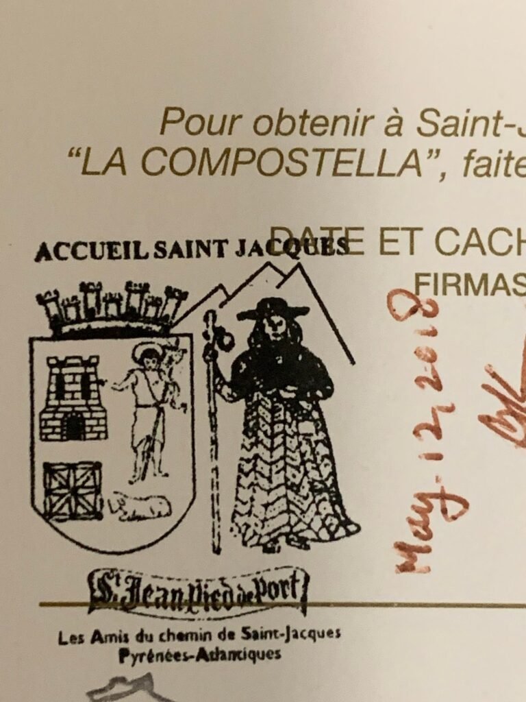 Because the office was closing soon, we decided we had better register first and then get our supplies. We walked up the cobblestone street to find the pilgrims office. There were only a few pilgrims ahead of us as we anxiously awaited our turn. Approaching the desk, we were excited and nervous at the same time. The nice lady asked us our names and where we were from, and then she proceeded to pull out some paperwork. She asked if we had ever walked over the Pyrenees. When we said no, she pulled out a map.