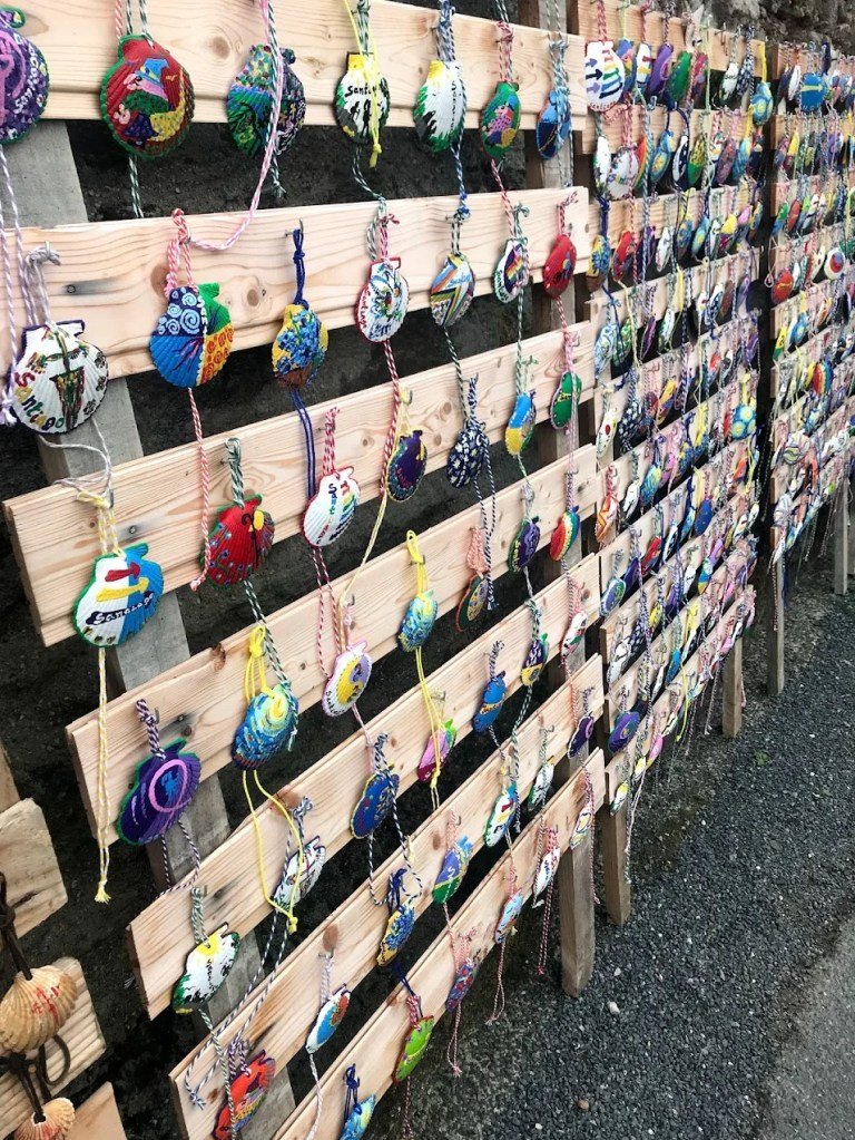 I’ve been fascinated with the Santiago pilgrimage ever since I became intrigued with the scallop shells I saw embedded in houses around Paris when I lived there in the late 1980s. Other than French aesthetics, I wondered why someone would display a shell on the lintel of their doorway or their windowsill. Over time, I’ve come to appreciate the motivation, realizing that my habit of displaying photographs and creating altars of travel souvenirs is scarcely different from the response of medieval travelers. The scallop shells were the proud symbols of returned pilgrims from the legendary shrine of Saint James the Apostle at Santiago de Compostela, in Galicia on Spain’s northwest Atlantic coast.